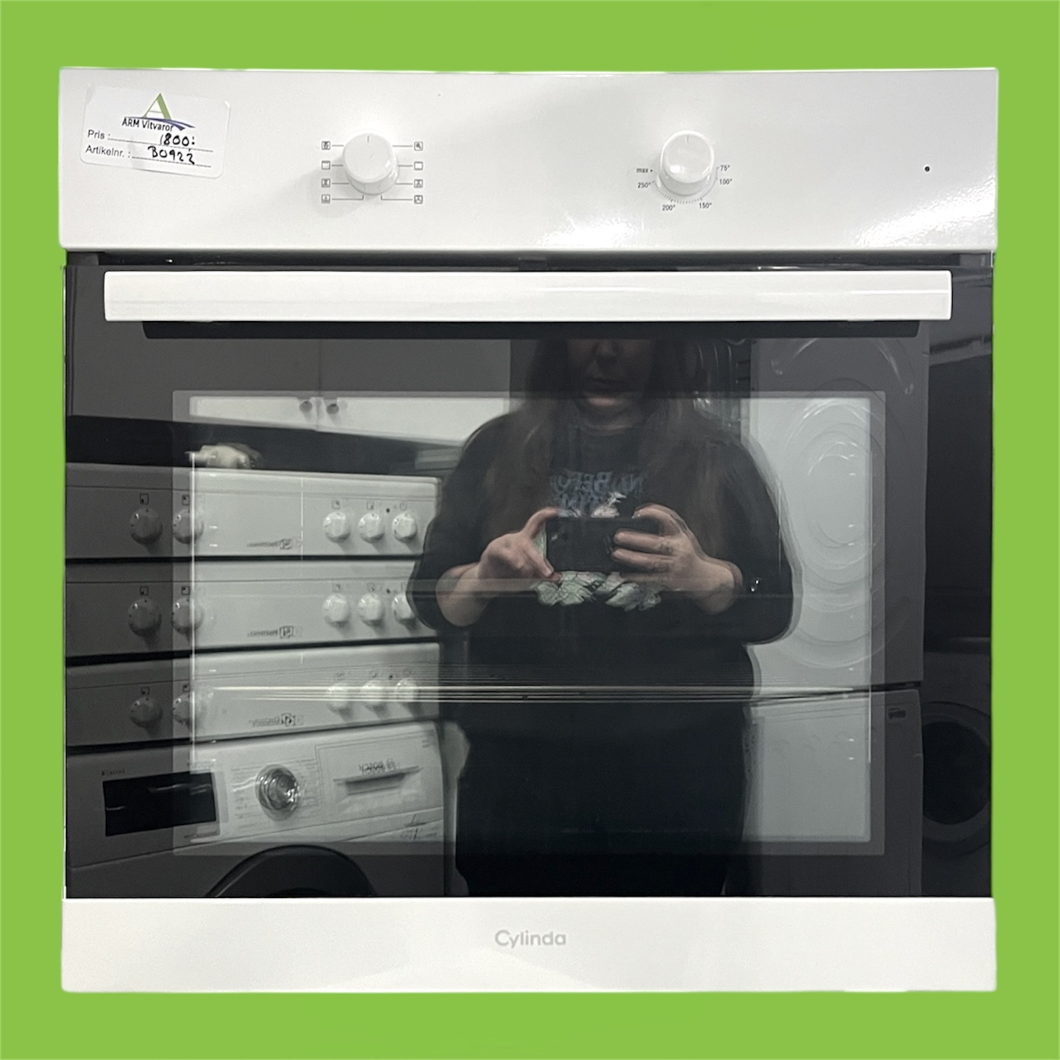 Ugn för inbyggnad, tillverkad av Cylinda. Utrustad med varmluft och grillfunktion.