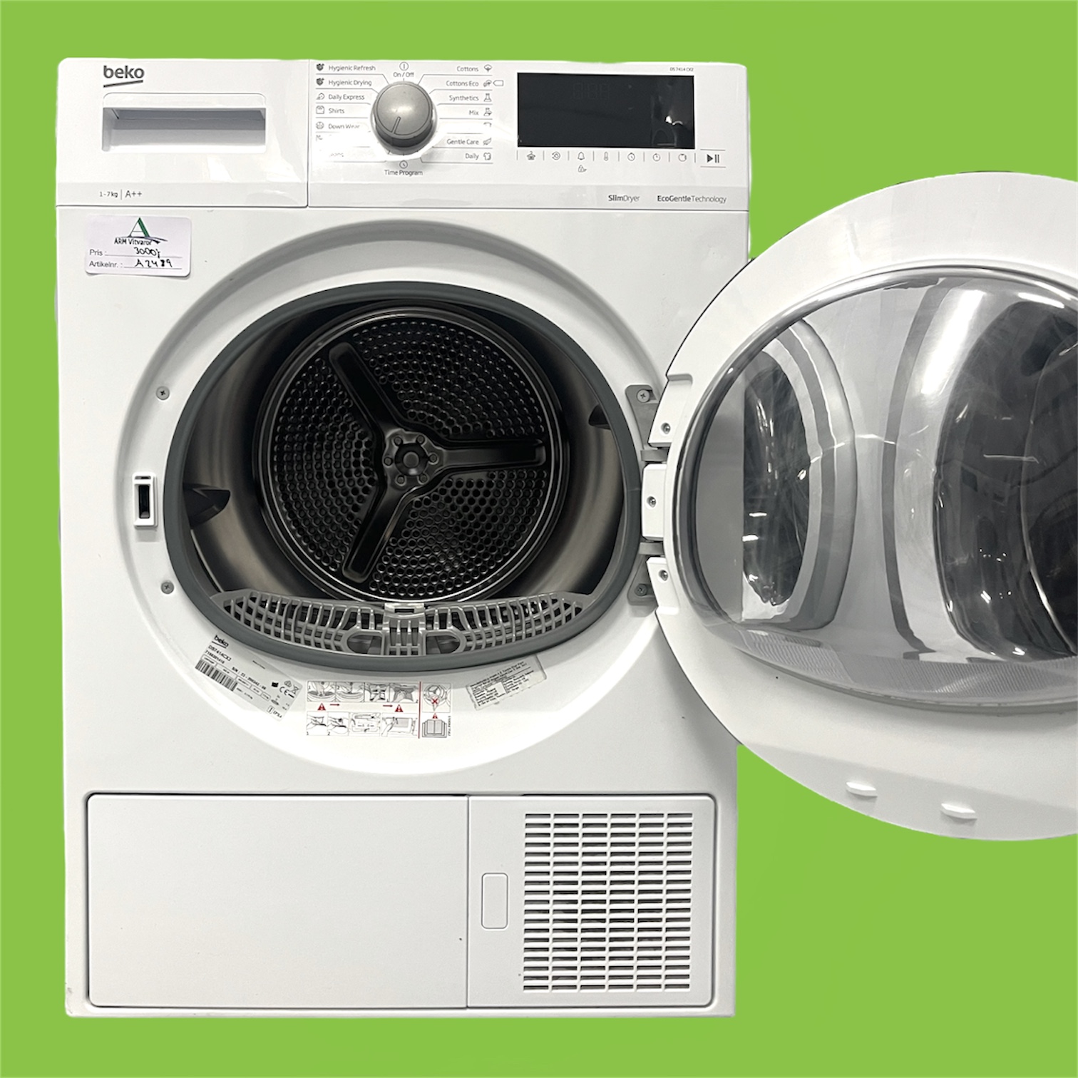 Torktumlare av något tunnare modell, med värmepump, made in Turkey.
