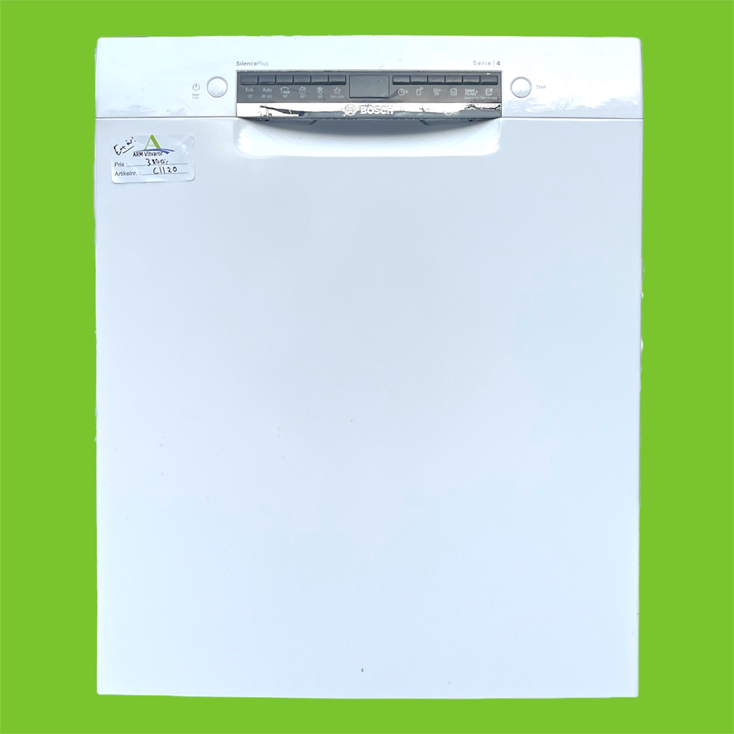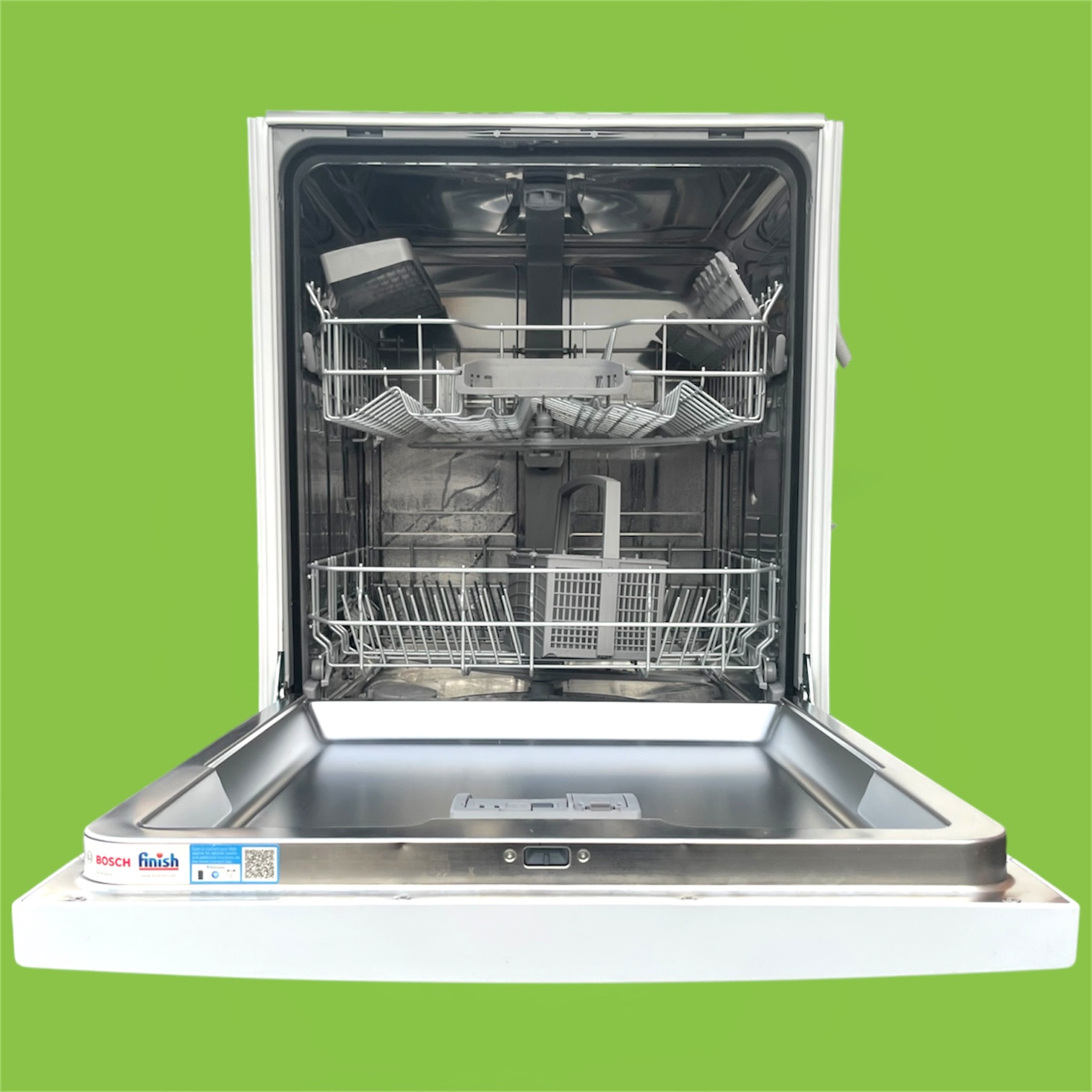 En mycket ung, smart diskmaskin från Bosch Serie 4. Utrustad med Boschs särskilt tysta och energisnåla EcoSilence Drive-motor, samt praktiska funktioner så som ExtraDry och Extra tyst-läge.