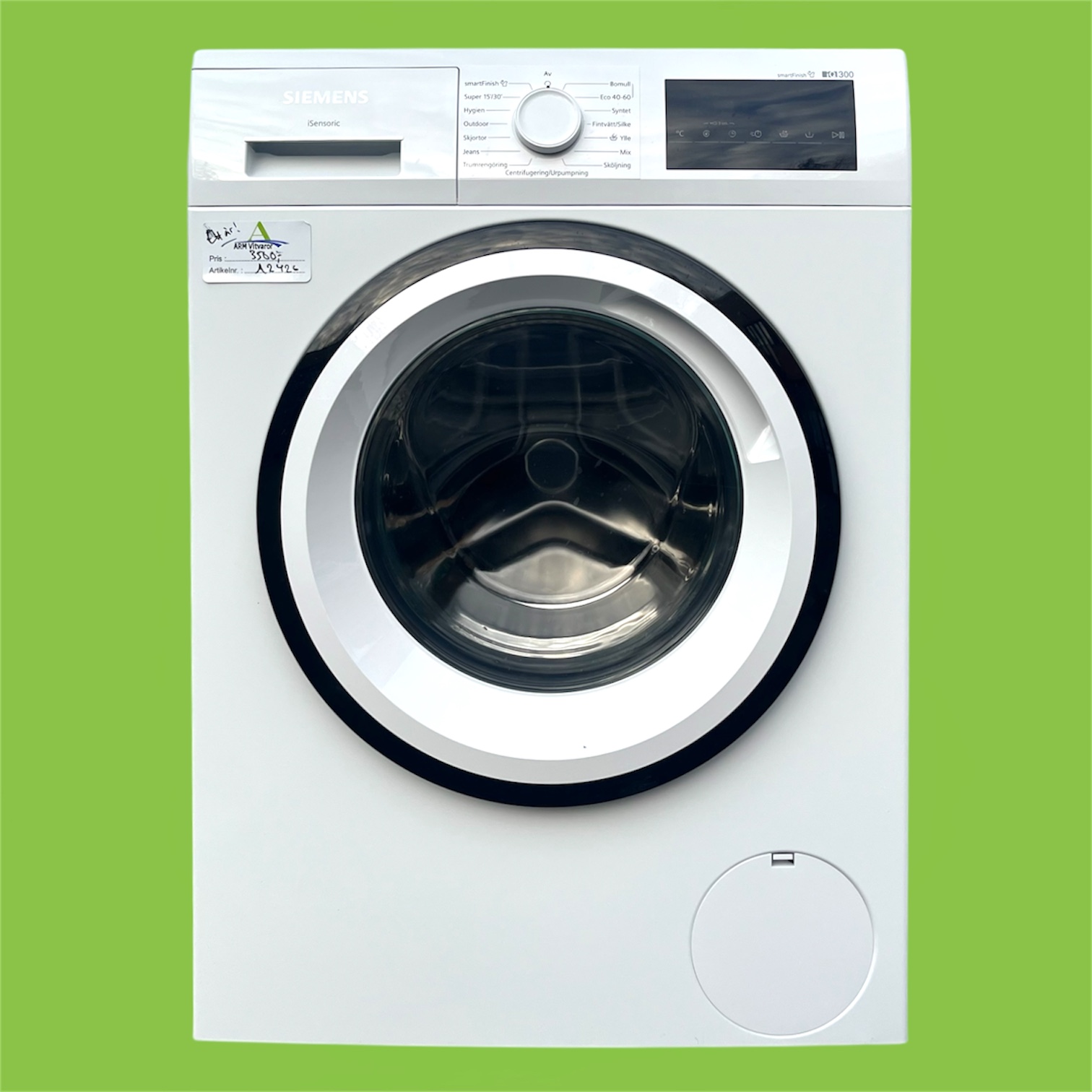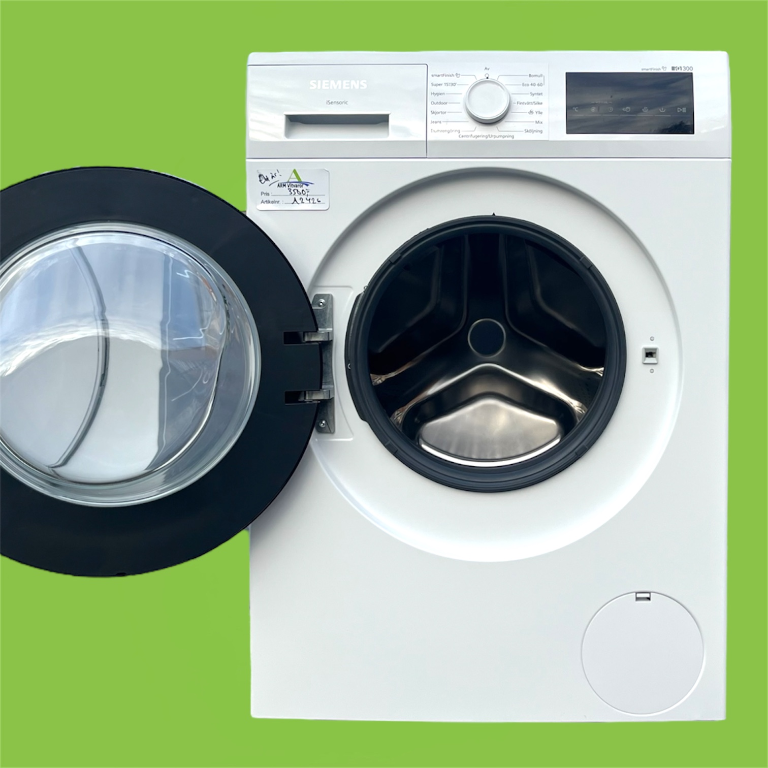 Tvättmaskin med stor kapacitet, tillverkad av Siemens iQ300. Utrustad med Siemens särskilt tysta och energisnåla iQdrive-motor!