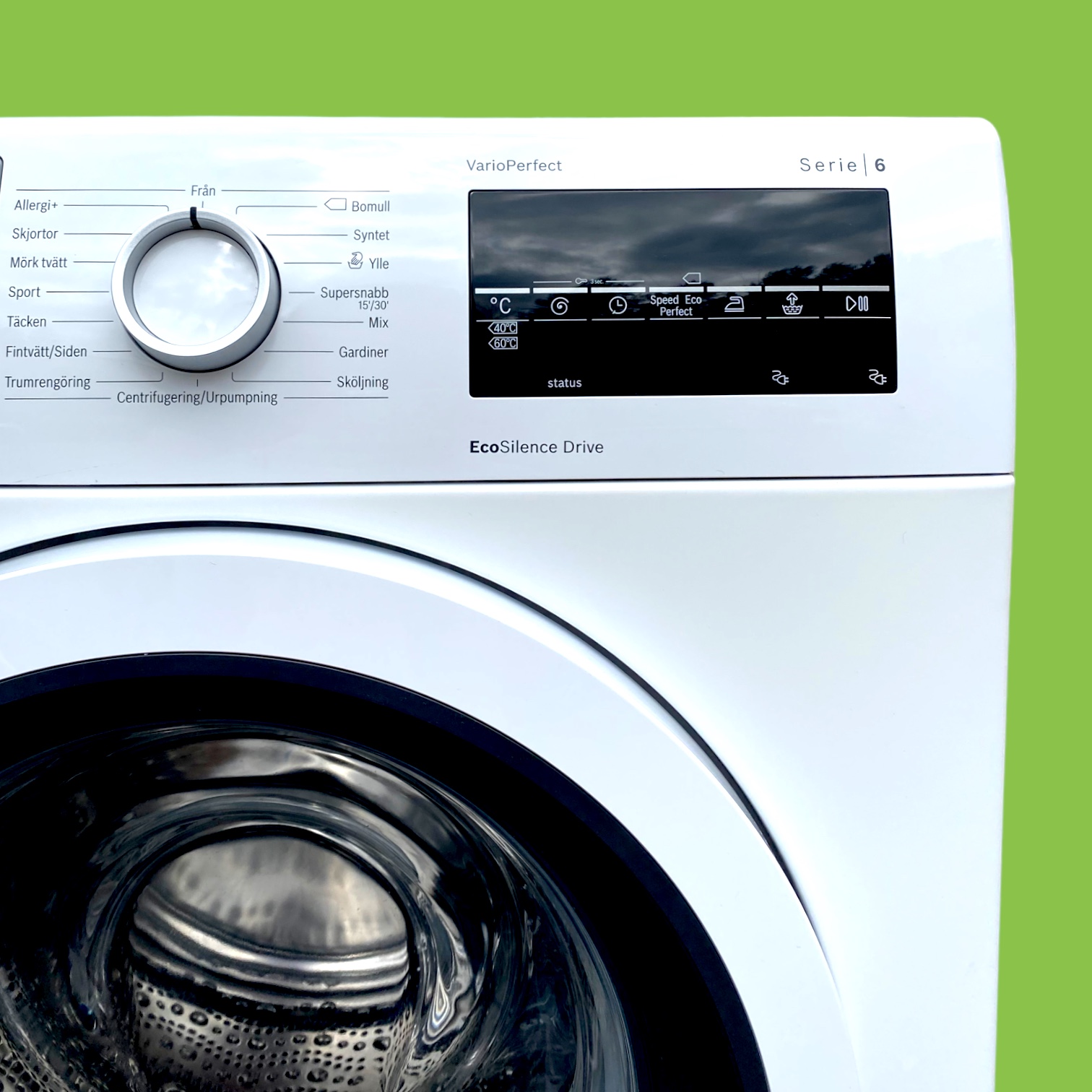 En riktigt fin Bosch tvättmaskin, made in Germany. Utrustad med marknadens tystaste motor, EcoSilence Drive.  Stor LED-display med tydlig exponering av funktioner och valmöjligheter.